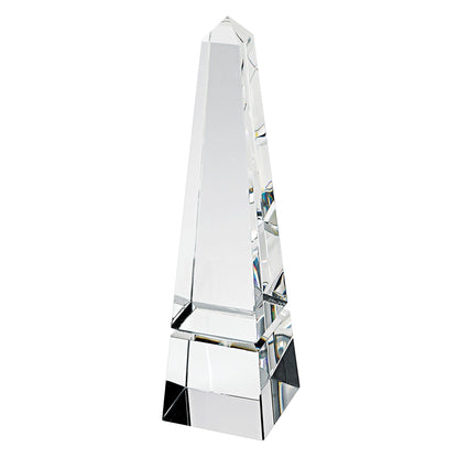 This 10.5-inch clear crystal obelisk statue will add a beautiful decorative accent to your decor. This statuesque and prismatic faceted crystal monument will be a beautiful addition to your desk, mantle, bookshelf, or dresser. This hand-crafted piece is made of high quality mouth blown lead free crystal. A perfect decorative addition for anyone who loves a stylish look and feel. 10.5-inch H x 2.75-inch W x 2.75-inch D