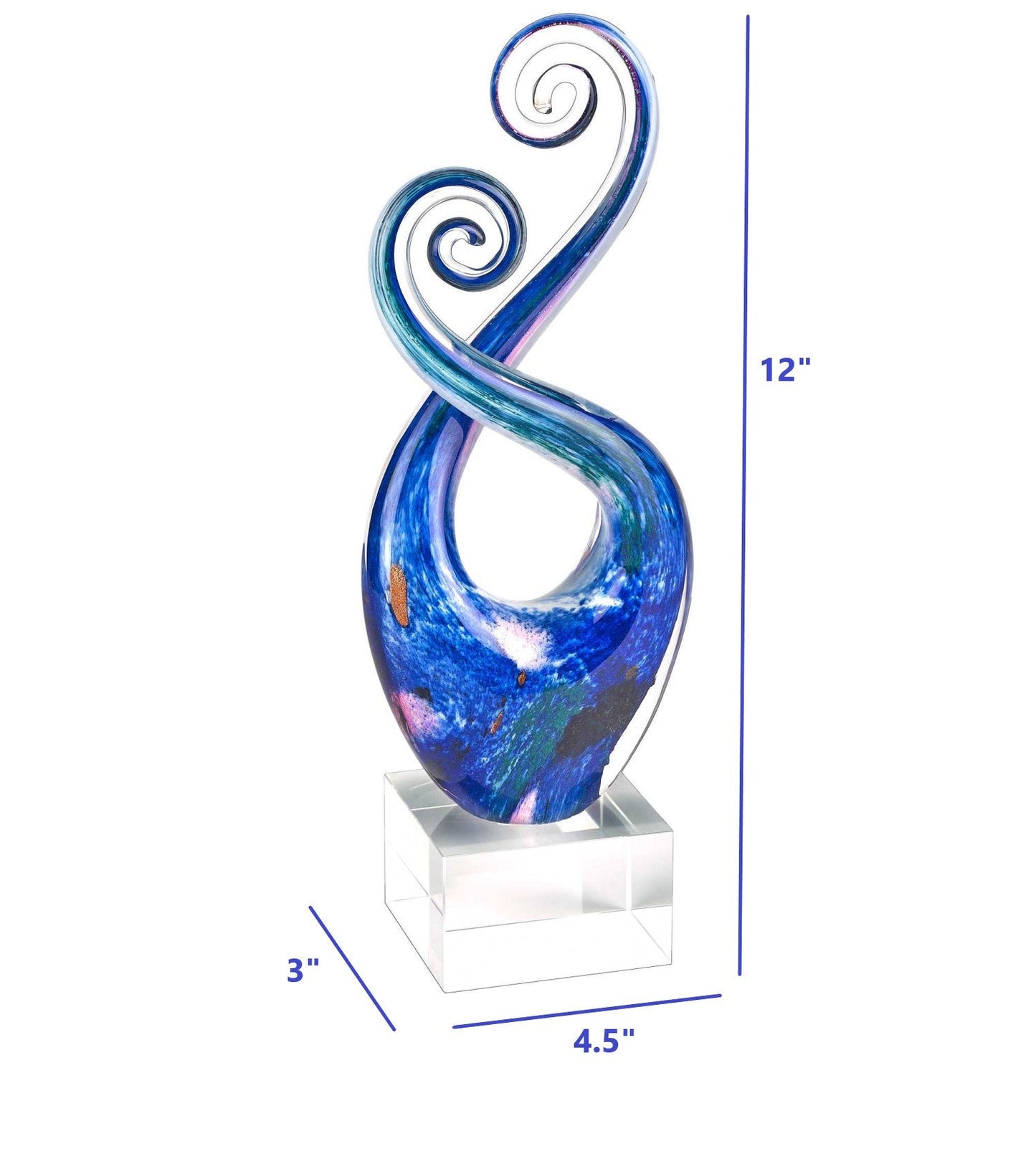 Bring some sizzle to your space with this eye-catching 12-inch blue and green murano glass modern abstract tabletop sculpture. This blue and green hued piece represents high quality, expertly made from high grade murano glass. Great to use on its own or mix with other decorations for the perfect look. 12-inch H x 3-inch W x 4.5-inch D