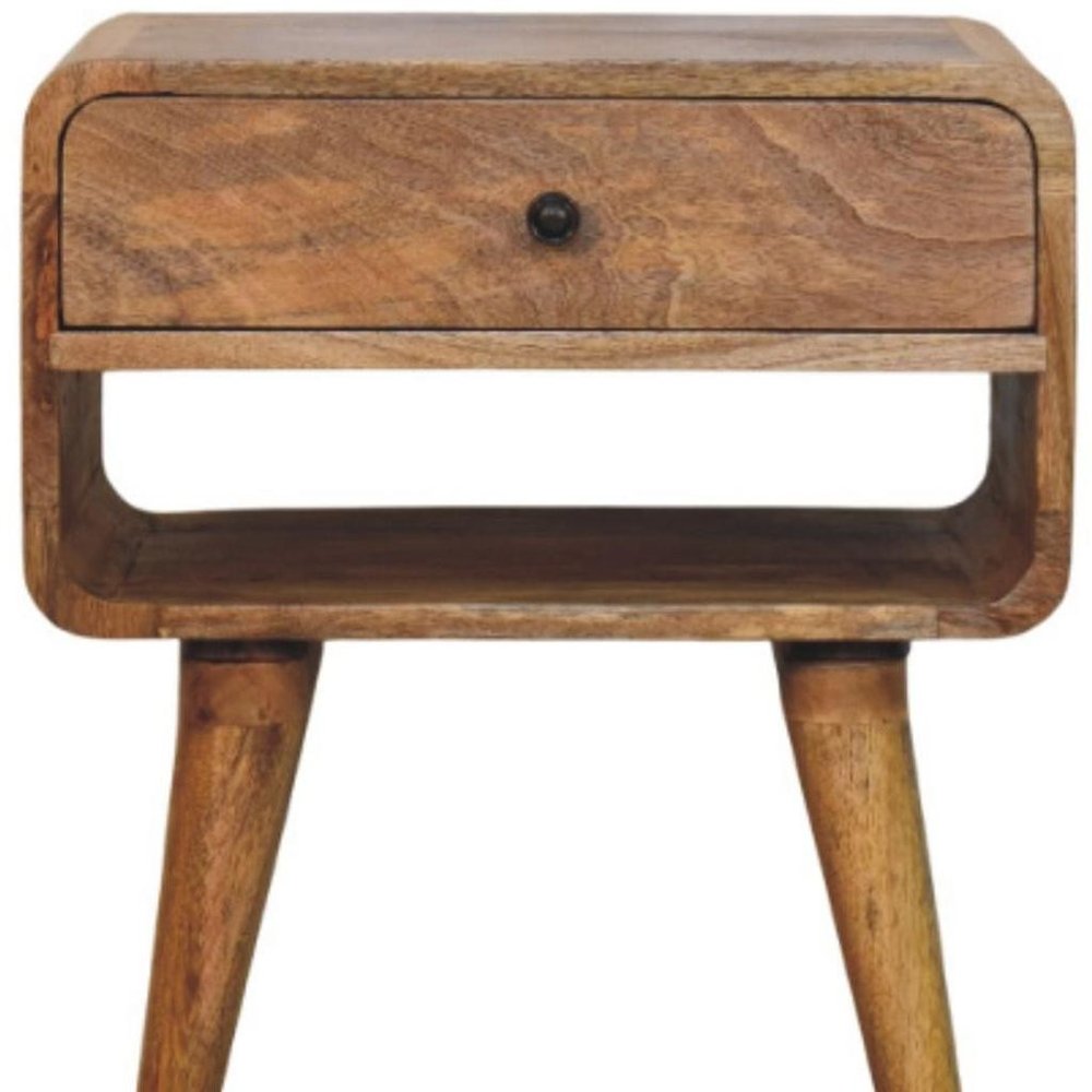 Our 22-inch brown solid wood two drawer nightstand will compliment your bed beautifully. Sturdy and durable construction from solid wood ensures this trusty bedside table is built to last. The piece has 2 drawers to store your bedtime essentials close to you as you rest. An easy-access shelf gives you additional storage and display space. The unsung hero of the bedroom, this nightstand is perfect for keeping a glass of water, lamp, alarm clock, jewelry, and more, close by and easily accessible. Look no further than this nightstand to accommodate all your needs and upgrade the style of your bedroom. 22.00-inch h x 17.70-inch w x 13.80-inch d.