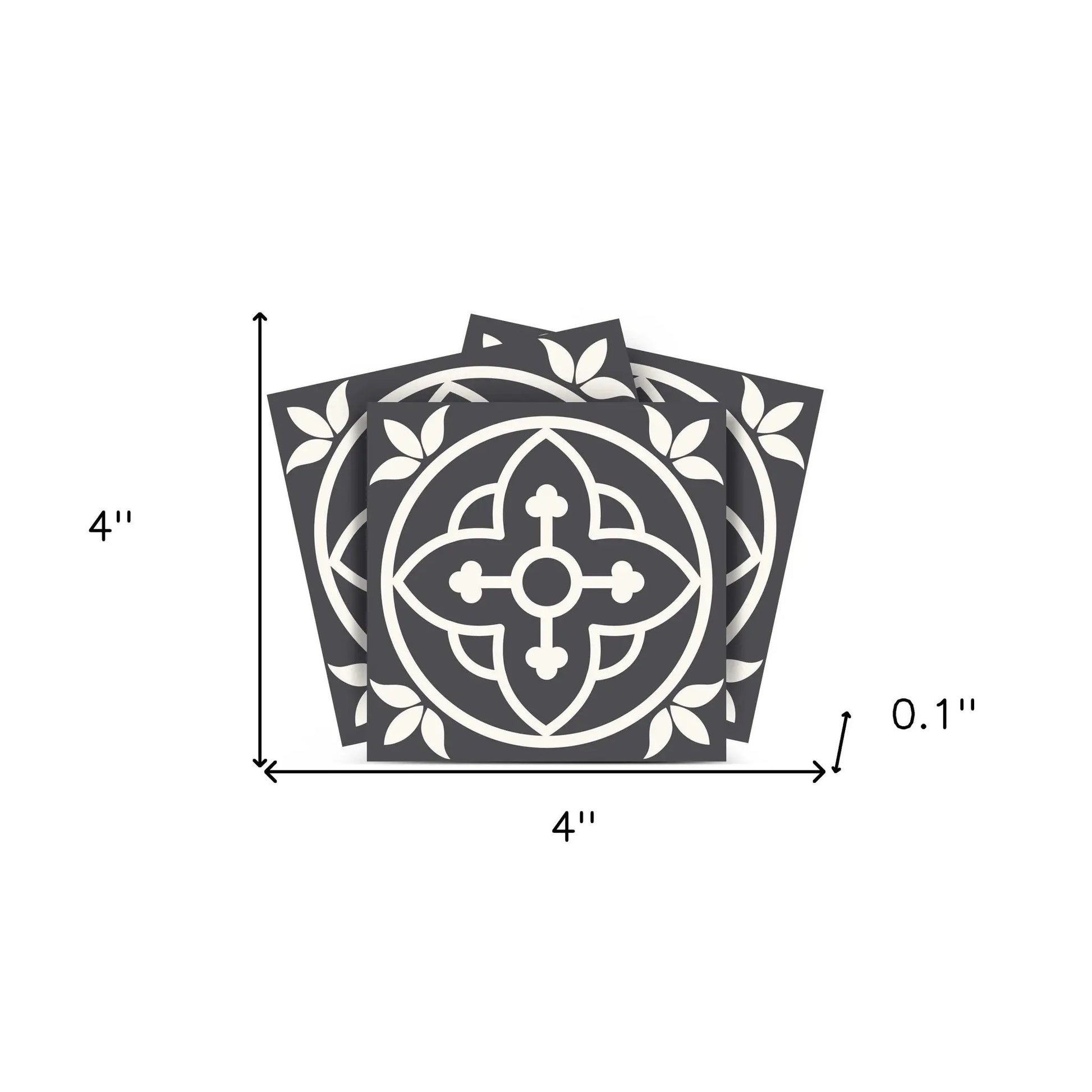 The possibilities are endless with these 4" X 4" Tulipa Gray and White Peel and Stick Removable Tile Stickers. These fabulous peel and stick tiles will add lots of color, sophisticated flair, and fun design to your kitchen backsplash, fireplace mantel, stair treads, half wall, bathroom or nook. These 4" square tile stickers in multiple bright fun colors and designs are an easy, no mess solution to complete a personalized and colorful room makeover. Easy to apply on any clean dry flat surface, and easy to remove. Multi use and multi-room appeal make this design option is perfect for renters, landlords, college students and homeowners alike. Peel and stick tile decals make it easy to turn your space into a home. Removable without damage to surfaces. One kit contains 24 stickers. Kit includes a single style tile design.