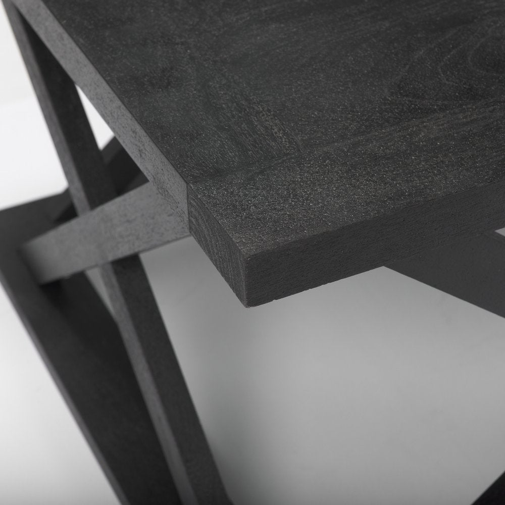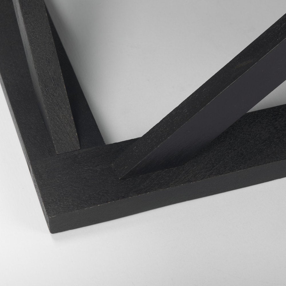 Add handsome, fashionable design to your living space with this 48-inch black solid wood frame coffee table. Made of solid wood, the rustic black coloration throughout gives this piece an updated and refreshing look. This solid wood table features an open geometric lattice base design. This updated classic rectangular table will be a great accent in any room it has an attractive design that will definitely breathe some fresh air into your interior17.5-inch h x 48-inch w x 28-inch d.